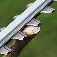 This is a great hedge cutter and I really liked the lockable rotating handle and quiet operation. The anti-jam feature is annoying however and after a while will cut out on smaller twigs, this isn’t a cutter for high-torque, high-powered hedge lowering or thinning – the Ryobi OPT1845 18V One+ long pole hedge cutter has the bite for this and also the Ryobi RHT36B60R 36V 2-speed hedgecutter.