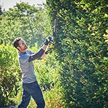 Tidied up my conifers super quickly and easy. Right through the twigs and didn’t get stuck on anything. Initially I was a bit nervous of using this but was instilled with confidence with the safe guards and multi triggers so any fear of me accidentally cutting myself was put to rest. The Hedge sweep attachment was really handy at knocking off and guiding the trimmings. Not overly heavy and the battery lasted long enough for me to fill my garden waste bin.