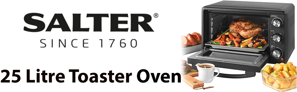 Create a range of tasty meals and delicious snacks with this Salter 25 Litre Mini Oven, perfect for everyday use. Including 1500 W, the oven features a generous 25 litre capacity and a variable temperature control ranging from 100-230°C. Complete with a 60 minute timer, the mini oven has a large viewing window so you can easily keep an eye on food while cooking. Boasting convenient indicator lights, the oven features an automatic shut-off function to provide peace of mind and optimal safety.