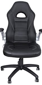 SONGMICS Racing Sport Office Chair with Tilt Function Computer Desk Swivel Chair PU Black OBG56BUK