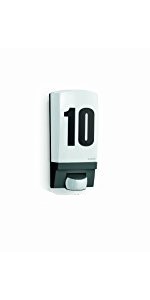 Steinel House Number Light L 1 S White E27 – max. 60 Watts Outdoor Wall Light with 180° Motion Sensor 10 m Range – Number Plaque Light for Front Doo