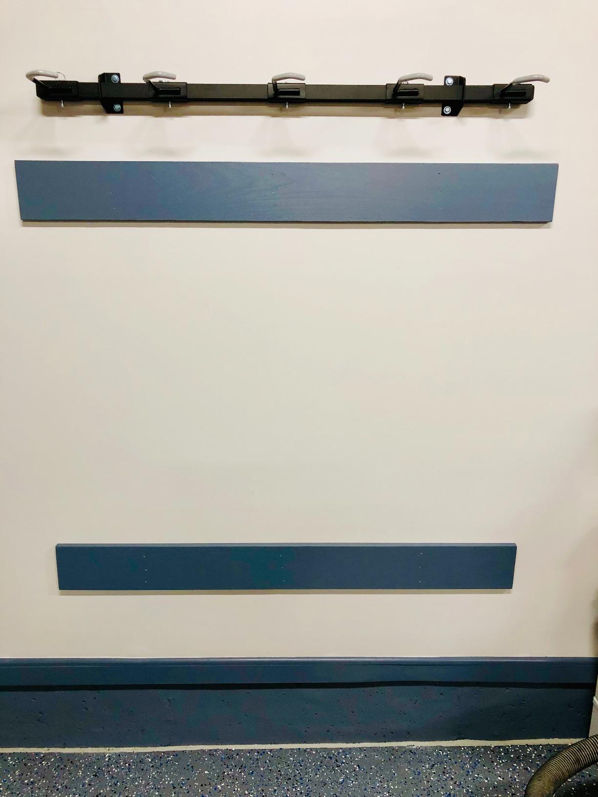 Another piece of information missing from the SYB instructions was how high on the wall the rack should go. This is a non-intuitive measurement because the hooks engage the wheel near the axle, but the bike comes to rest hanging somewhere above the axle, but it is not clear exactly where. The bike will drop down somewhat when the wheel is hooked. Frustratingly, I had to remount my whole rack because I did not allow enough “sag” to keep my longer bikes up off the floor despite repeated measuring and estimating the sag.