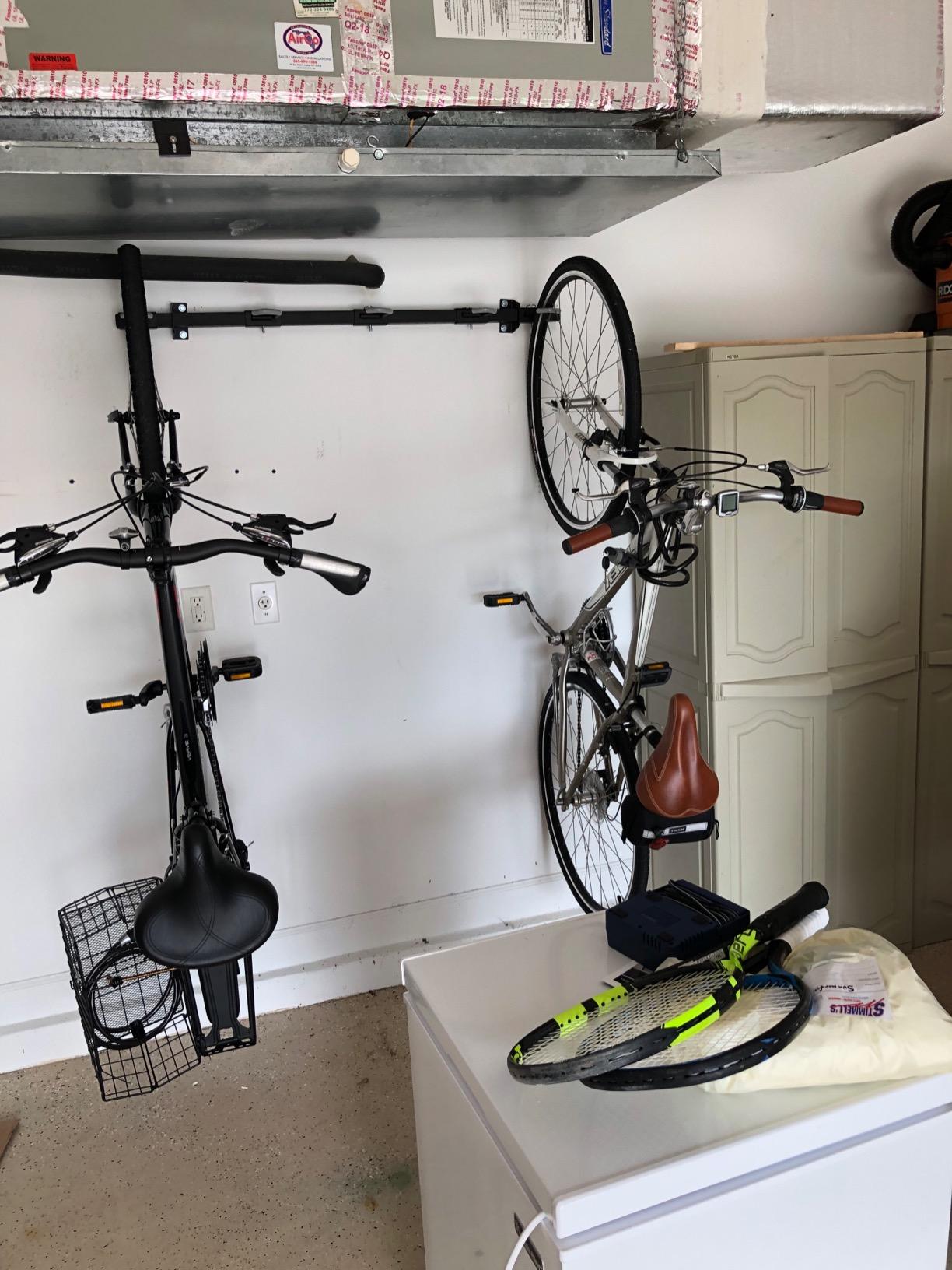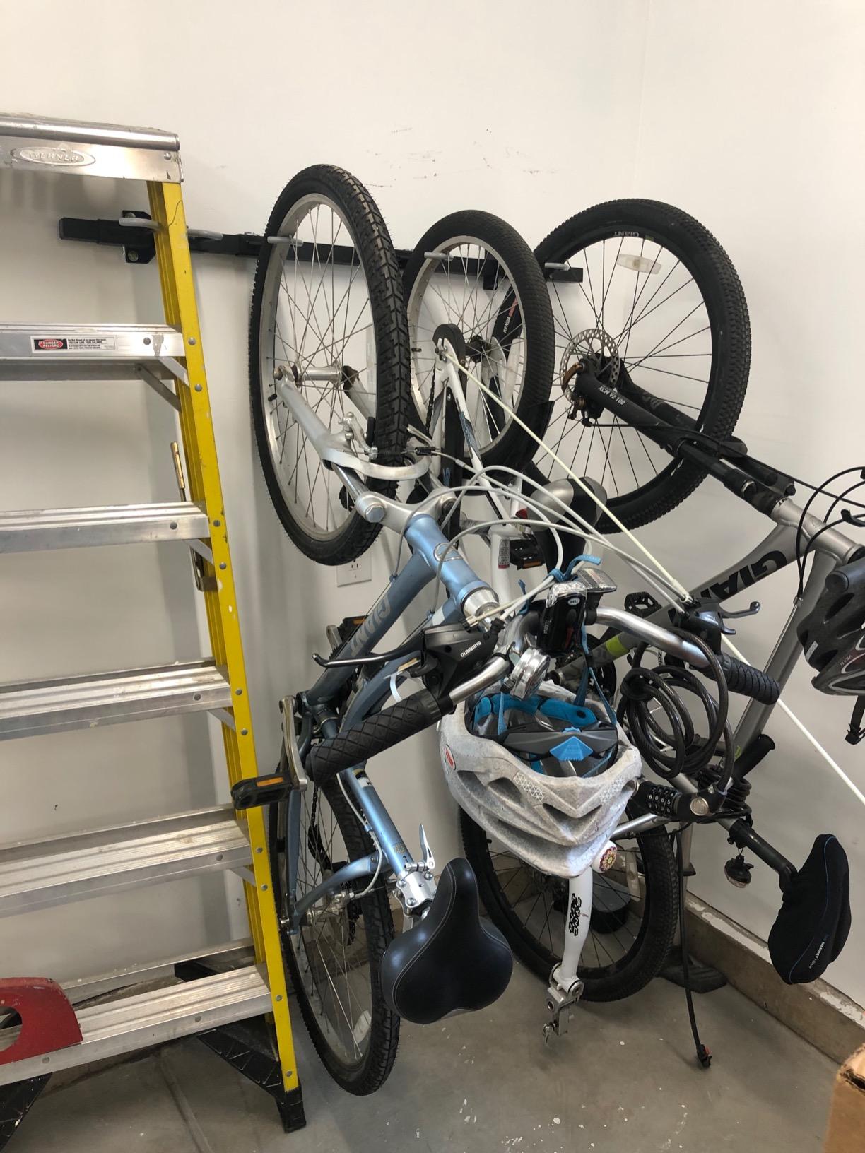 Love this to get our bikes off of the ground and organized! Very easy to get on and off we have 2 adult 1 youth bike on it and could not be happier keeps the garage organized.