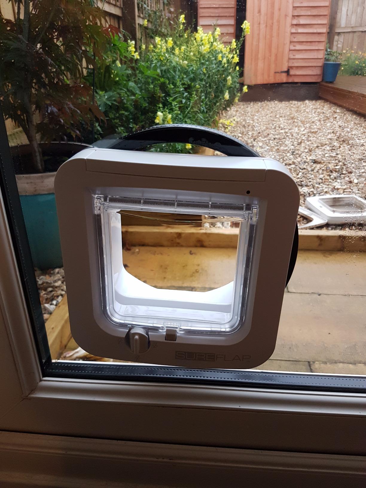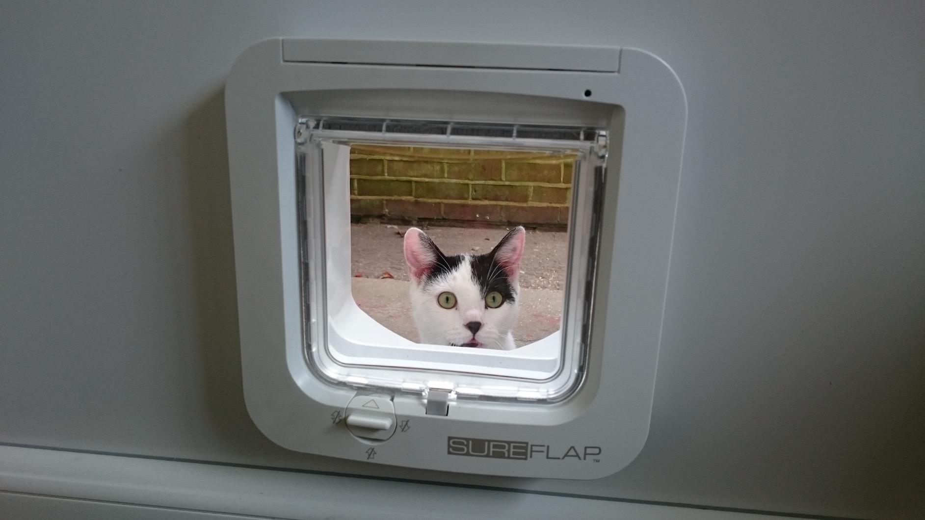 The main faff was getting my cat to stick her head in so I could scan her microchip – that was definitely a two person job. She was also a little hesitant about coming in through this new strange clicky thing that had replaced her normal flap. Now she understands the cat flap she sometimes pauses in the doorway to have a quick look around before coming through, only to discover the lock has been reapplied, but she seems to be fine to come in once she puts her head in the door again.