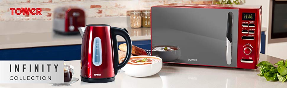 This Tower Infinity Digital Solo Microwave is a quality product which performs efficiently and adds a touch of class any kitchen. The deep red colour is attractive and the product is large without being cumbersome.