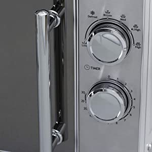 Ideal for One or All the FamilyThe 800W output and 20 litre capacity ensures food is cooked evenly throughout, with sufficient cooking space to accommodate the whole family. | 5 Variable Cooking SettingsThe five power levels allow you to easily adjust between temperatures to suit your cooking preference, including a defrost function for frozen foods. | Versatile Style and PracticalityFeaturing a mirror effect door with a chrome finish door handle, as well as stylish chrome dials that give this cooking appliance the wow factor during meal preparation. |