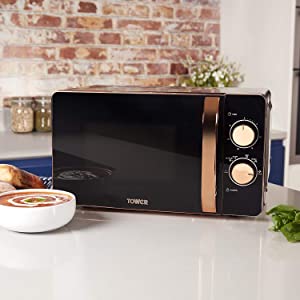 Tower 20L Manual Microwave, Manual Timer, Black and Rose Gold