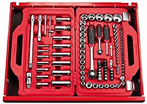 La migliore cassetta che si possa trovare, per quanto riguarda la qualit, quantit, utilit. sono presiti cricchetti da 1/4e 1/2 pollice con le rispettive bussole sia nomali che lunghe, oltre bussole torx da 1/4 e da 1/2 nel suo intero c’ tutto quello che pu servire per svolgere lavori meccanici naturalmente da abbinare ad un set di chiavi combinate.