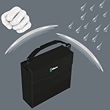 The Velcro can be a pain to undo, but that isn’t necessarily bad since if it tips over in the back of my truck none of my tools spill out. I love how other Wera tool kits just stick to the outside of this case making it easier to take in the items you need to accomplish the job. This is one of my favorites.
