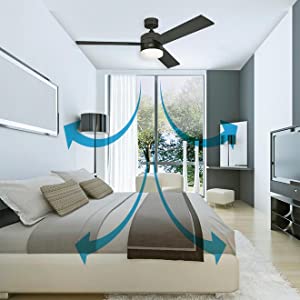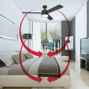 il ventilatore incredibilmente silenzioso e il controllo remoto non perde un colpo, da qualsiasi angolazione della stanza.