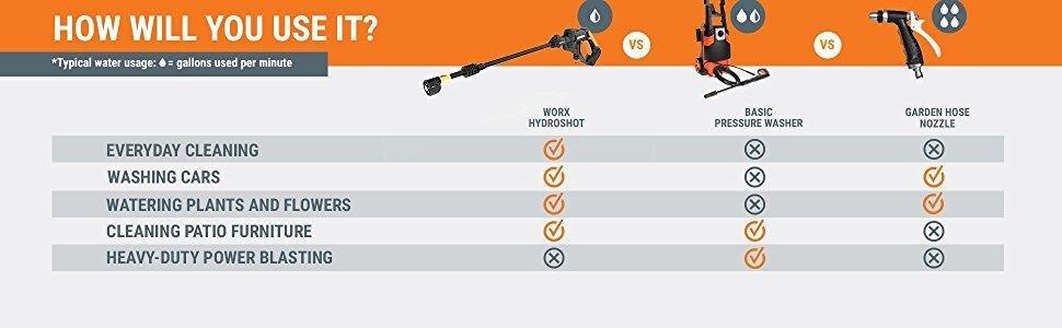 Do not be under the impression that the hydroshot will use high pressure. It doesn’t. What it does (at least for me) is give the versatility to rinse off my caravan using water frugally but very efficiently. The battery does not last long enough in my opinion but fortunately I have a spare so its not an issue.