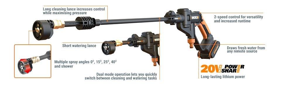 What a fantastic piece of kit. Is it a super power washer no but perfect for car cleaning or window cleaning if you don’t have a tap handy I love this so much. I have just cleaned two cars and outside windows and still loads of battery left. Use from a bucket or you can connect a hose which is more powerful. You won’t regret getting this but it is not a high power jet washer but if it was it would damage your paintwork.
