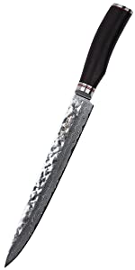 Overall, a stunning blade using a 67 layer Damascus technique, there are 33 layers either side of a stainless steel VG-10 core that is sharpened beautifully, the hammered effect adds character, the handle has a lovely colour and grain that finishes the knife off perfectly, very sharp and cuts effortlessly whilst being comfortable to use for long periods at a time, I would happily purchase other variants and proudly display them on my magnetic knife stand in the kitchen, thank you.