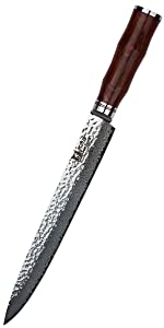 YOUSUNLONG Filleting Knives 10 inch Sashimi Knives Japanese VG10 Hammered Damascus Steel Natural Walnut Wooden Handle with Leather Sheath