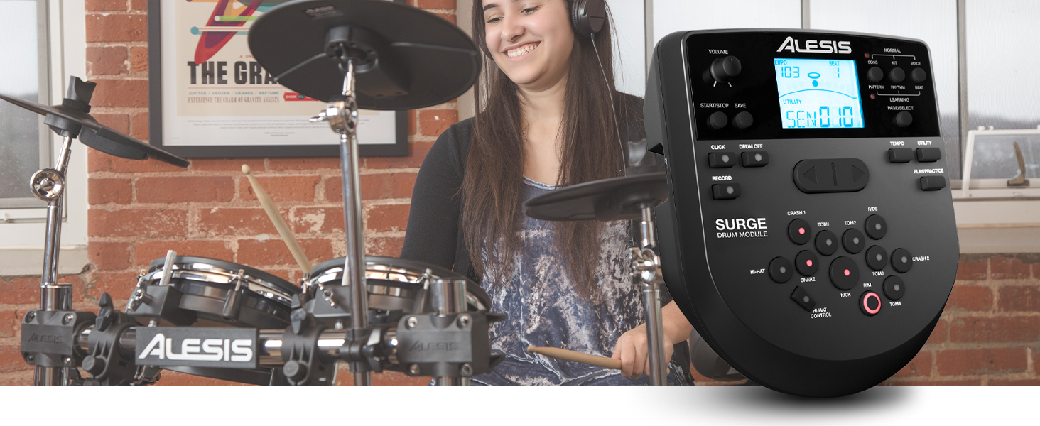 -       Sharpen Your SkillsWith 60 built-in play-along tracks, a sequencer, metronome and performance recorder, the Surge Mesh Kit is the ultimate tool that gets the best out of your performance.