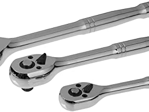 I looked at a lot of socket sets before I chose this one and after advise from a few friends who pointed me away from sets twice the price as I would only be using it 2-3 times a year for oil changes and maintenance on my motorcycle I was more than pleased when the set was delivered, the quality looks appears great the 3 wrenches are very very solid and have fine teeth and the set as most of what I will ever need a great bit of Kit for the money