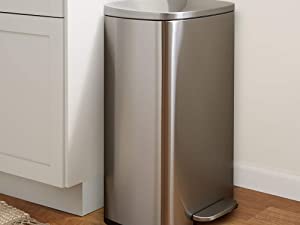 Overall a very good trash can. Functions as needed. The only point I do not love is that it is very lightweight and constantly dings the wall when on a tile floor. It slides around frequently when being used with the foot pedal. Otherwise a solid item.