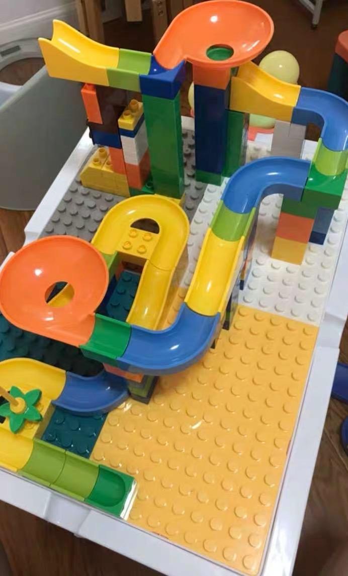 Love that the table can be adjusted to two different heights. The marble run is fun and my little boy loves it and has fun re building it into different configurations.