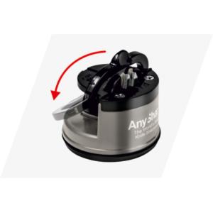 Hands free safetyThe AnySharp’s safety feature is its PowerGrip suction cup base, which attaches securely to any smooth surface or worktop without the need for any tools. Once it’s attached you can sharpen any knife safely hands free. | Knife edge safetyWhen your whole knife has been run through, your knife edge may touch as it exits the sharpening tools. The AnySharp has a long-lasting polymer guiding top that is softer than metal, and therefore won’t damage the metal edge, making it safe for your knives too. | Easy, light strokesWith a totally blunt knife, AnySharp will hone it to an optimal angle, and remove excess metal rapidly the first time you use it. AnySharp does not work well with heavy strokes or too much pressure. Please use only light pressure. |