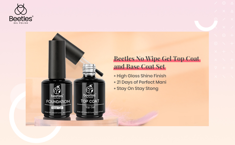 Beetles Gel Nail Polishes Top and Base Coat- No Wipe Gel Top Coat and Base Coat Gel Nail Polish Set 15ml, Soak Off Nail Lamp Gel Polish Nail Art Manicure Salon DIY Glossy Shine Finish Beauty Gifts
