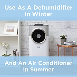 BLACK+DECKER BXAC40007GB 10,000 BTU Portable 3-in-1 Air Conditioner, Dehumidifier, Cooling Fan, LED Display, 3 Fan Speed, 24 Hour Timer, Remote Control, White [Energy Class A+]