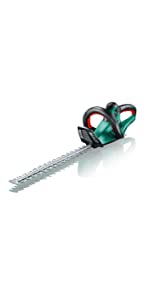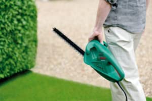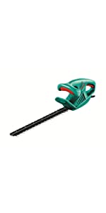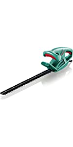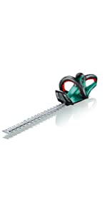 Well made, intuitive to use, double triggers for safety. I am very happy with the Bosch AHS 45-16 Electric Hedge Cutter, 450 mm Blade Length, 16 mm Tooth Opening. It made very short work of some seriously overgrown bushes and hedges outside the front of my house. 20 minutes and things looked so much better. I would recommend it.