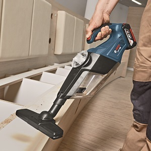 VersatilityThe dust extractor is supplied with a crevice nozzle, flexible tube, floor nozzle and extension pipe. They form a versatile system which will deal with anything from cleaning work benches, floors and van interiors to reaching high places, probing tight corners and removing fine dust. | Li-ion technologyThe latest Li-ion technology allows Bosch batteries (sold separately) to be charged unusually quickly. It also permits them to be topped up at any time, even if their charge level is still quite high, with no reduction in lifetime. | Tool compatibilityThis dust extractor is part of, and fully compatible with, the comprehensive Bosch 18 V Li-ion power tool range. All of these tools, along with their chargers and batteries, can be flexibly mixed and matched. |