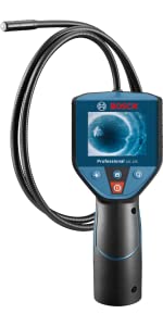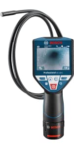 Compass View for unbeatable orientationThe Bosch GIC 120 Professional’s Compass View feature guarantees continuous, optimum orientation: At the push of a button, a yellow point indicates the top of the camera. This is particularly useful if you have to inspect the interior of a pipe with no water in it and it is impossible to ascertain the current position of the camera without help. The bright LED worklight sheds light on any situation, allowing you to identify critical areas with even more speed and precision. The compact housing with improved ergonomics ensures that the GIC 120 Professional from Bosch is comfortable to handle in any situation. The camera head and cable can be detached and changed fast thanks to the Quick Connector technology. This also means that the tool can be packed away and stored in a compact fashion. | Clarity in areas no one else can reachThe GIC 120 Professional from Bosch gives gas fitters and plumbers the ability to inspect damaged areas in narrow pipes or track down blockages, for example. The GIC 120 Professional is also adept at discovering damage in vehicle engines fast. The 120 cm-long camera cable allows you to effortlessly reach otherwise-inaccessible and dark problem areas. The compact camera head with a diameter of just 8.5 mm ensures easy access and unbeatable handling in any situation. Tradespeople can always orient the camera with complete accuracy thanks to the Compass View feature and the bright LED worklight. The digital zoom enlarges details and helps you to identify the smallest of defects, while the colour display reproduces the position of the camera with an image quality of 320 x 240 pixels | The compact tool for quick and easy inspectionsThe Bosch GIC 120 Professional is a compact inspection camera that ensures a convenient overview of dark, difficult-to-access areas. Its 2.7″ colour display with digital zoom allows you to analyse problems in more detail. The particularly compact camera head with a diameter of 8.5 mm and the 120 cm-long camera cable allow tradespeople to access hard-to-reach spaces and track down problem areas with more success, aided by the practical Compass View feature, which guarantees users continuous optimal orientation. The bright LED worklight provides impressive illumination in dark environments. |