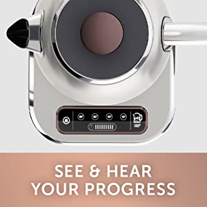 We’re pleasantly surprised with this kettle and really like it! It shows the temperature heating up and cooling down and how long it has to go to get to your set temperature. The lid is a little stiff to take off, but I think that will get easier over time. Overall, I think its a really nice kettle