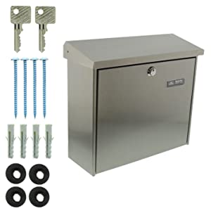 There are two conflicting wordings in the description of this item on Amazon. One states it is stainless steel and the other states it is verzinkte (galvanised) steel. The wording on the outside of the packaging states clearly that it is made of galvanised and indeed it is. So if you were expecting a stainless steel letter box you will be sorely disappointed!