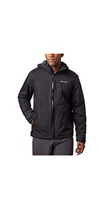 A classic highly protective Columbia softshell jacket: water resistant fabric and an adjustable storm hood, which you can take on and off as you please. Zipped pockets mean your valuables will be safe from harm no matter how much it pours down.