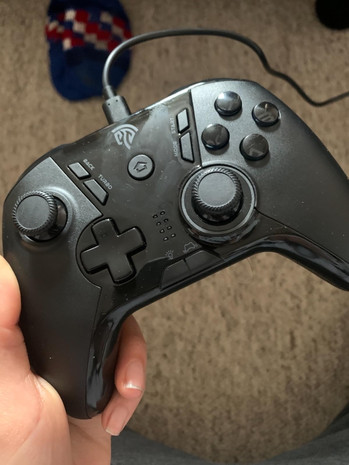 The sticks are very nice. They spring back to centre quickly. They don’t require too much effort to click down, and have a satisfying click when you do. On many of these inexpensive controllers, the thunbsticks often wobble about a lot when you are just resting your thumbs on them. Gladly, this wasn’t the case here. They are tight and smooth.