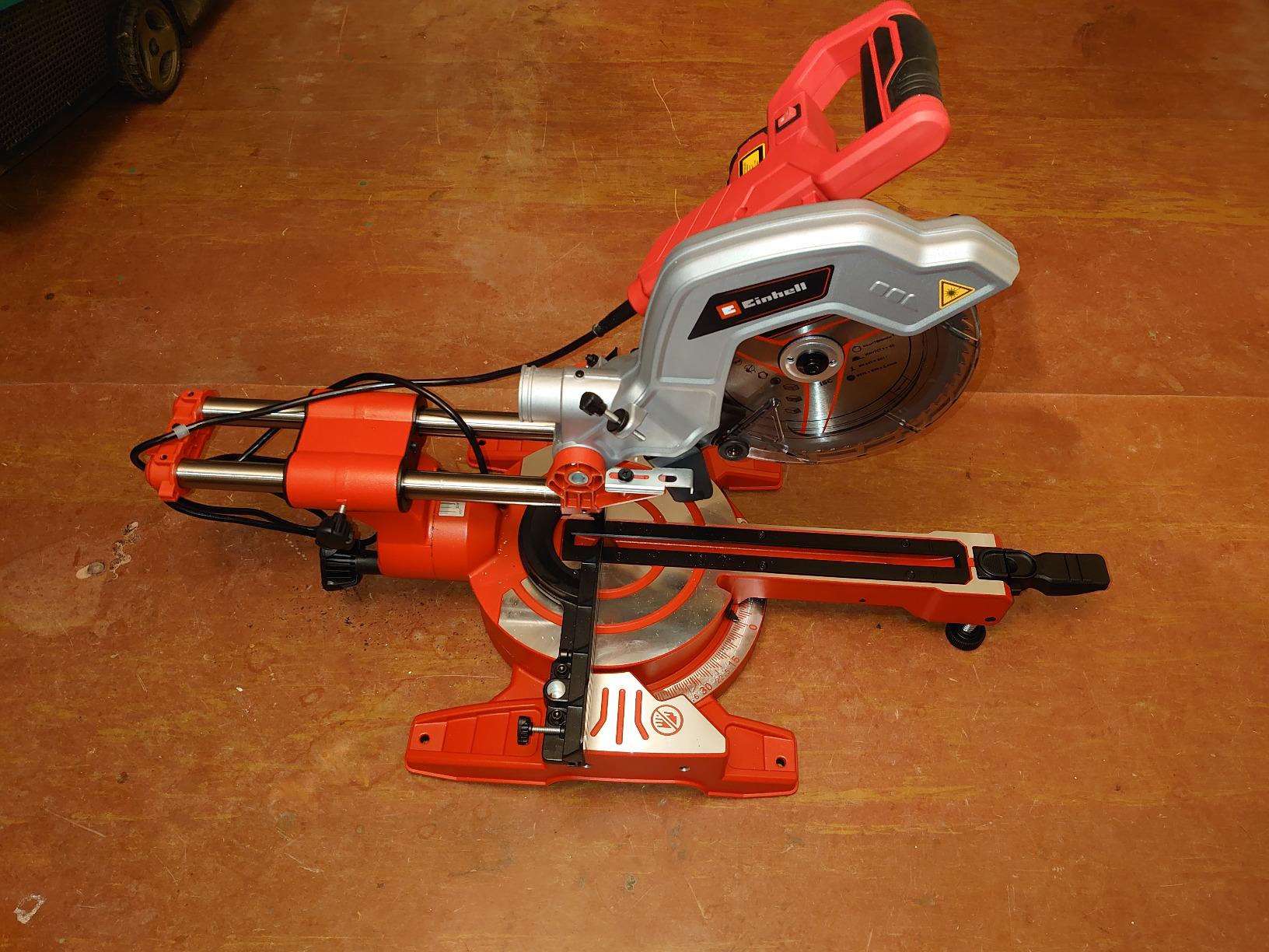 Diese Zug-Kapp-Gehrungssge von Einhell eignet sich gut fr den gelegentlichen Gebrauch, sgt gut und lsst sich auch einfach aufbauen.