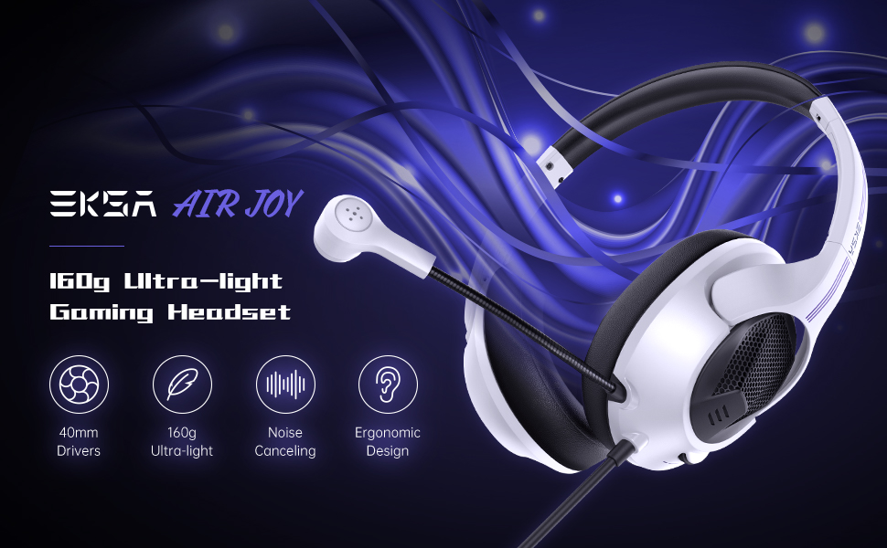 EKSA Gaming Headset Wired, 160G Ultralight Gaming Headphones with Microphone, Stereo Surround Sound, ENC Noise Cancelling Headphones for PS4 PS5 PC Xbox One Nintendo Switch Laptop Mac