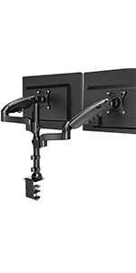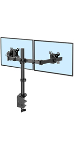The ErGear dual monitor stand each monitor arm features +85°/-30° tilt, 180° swivel range, and 360° monitor rotation. The mount offers a max pole height of 33cm a max arm height of 61cm, and up to 51cm of arm extension. Easily change the angle and position of your screen for more comfort. Share your computer screen during collaboration sessions or when working with other users.