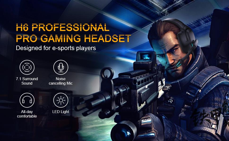 Gaming Headset, PS4 Headset, Surround Sound Pro Gamer Headphones for PS5, PC, Switch, Laptop, Xbox One Headset, H6 In-line Control Stereo Over Ear Headsets(Black)