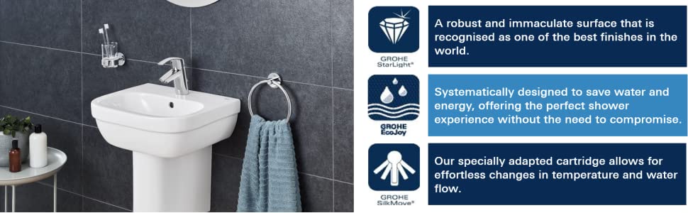 Gekauft habe ich die GROHE Eurosmart | Badarmatur – Einhand-Waschtischbatterie, mit Ablaufgarnitur | M-Size | chrom | 23322001