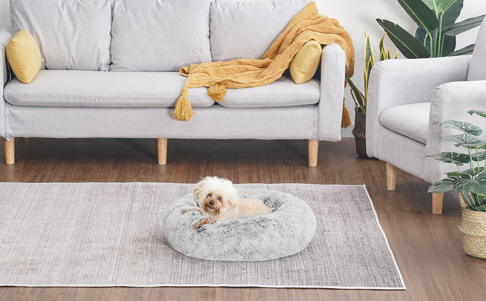 I have such a fussy little Frenchie who has never really taken to dog beds much in his life. The only one he ever liked was a large one of a similar type to this. He seems to sink into this bed and I think the feeling of being surrounded comforts him and makes him feel safe. I also put it onto the car seat when he is strapped into the car and he settles right down in it. it is very well made and lovely and soft and fluffy.