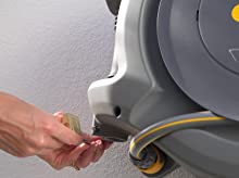 The reels mechanism automatically locks so that you don’t have to hold the hose taught.