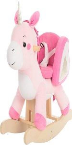 I bought this rocker for my daughter’s birthday and am so pleased with it. It is a lovely design with such a cute unicorn that is even nicer than in the photos. It is soft and comfortable for her to use. I like the sides that make it even more secure whilst she is on it, even though we use it with the safety belt. It has a gentle rock as you would expect. She loves the unicorn and cuddles it equally to enjoying riding on it.