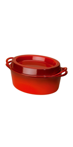 With the rectangular enamelled cast iron roasting dish, dinner doesn’t have to be overwhelming. Skip the takeaway and whip up a range of fuss-free, one-pot meals in no time. From oven baked egg avocadoes or lightly browned mac and cheese, to slow cooked lamb curry, perfect roast potatoes and ultimate gooey brownies for afters. Ideal for quick simmering, slow roasting or baking on medium-low heat, you can pop it in the oven, under the grill or use on all hob types, including induction.
