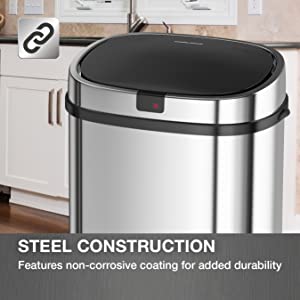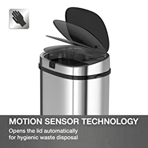 Maintain optimum hygiene at all times with the sensor activated stainless steel lid that automatically opens and closes when a hand is detected.