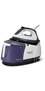Ultimate Cleaning PowerIdeal for crease removal in even the toughest fabric, the huge 170g of pressurised steam glides through stubborn creases easily. The Power Steam Elite is perfect if you usually spend a long time ironing and have everything to do from cotton shirts, to jeans, the kid’s school uniforms and bedding too. The Power Steam Elite is so powerful that the steam can penetrate multiple layers – cut your ironing time in half! | Easy To useEasy to use intuitive controls allow you to quickly and easily select the steam and temperature setting you need. With minimum to maximum temperature settings you can accurately match the settings on the steam generator to the instructions on the garment care label. | Detachable water tankA huge 2.2L water capacity allows you to iron for longer, without breaking your flow. The water tank can be removed easily by using the handle at the front so you can take it directly to the sink to fill up. Alternatively fill up at the board using the filler cap at the top of the tank. The continuous fill function allows you to top up water at any stage of your ironing, without having to wait for the iron to cool down first. | Vertical steamingThe ultimate steam power can be used for more than just ironing. With it’s deep penetrating heat and moisture the Power Steam Elite can be used to remove creases from hanging curtains. Freshen up duvets and mattresses. You can even use it to do you dry cleaning at home and remove odours and creases from garments. |