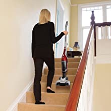 This is really light weight a good little hoover for quickness an power last a long time .I dont use it on stairs as i have oak staircase but i should imagine it would be great taking the small hoover out .This is a great 2 in 1 hoover .