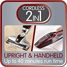 Two-in-One cordless vacuum cleaner – For cleaning versatility, no matter what the task at hand. Upright mode for quick pick-ups. Handheld mode for a portable solution for those hard to reach areas.