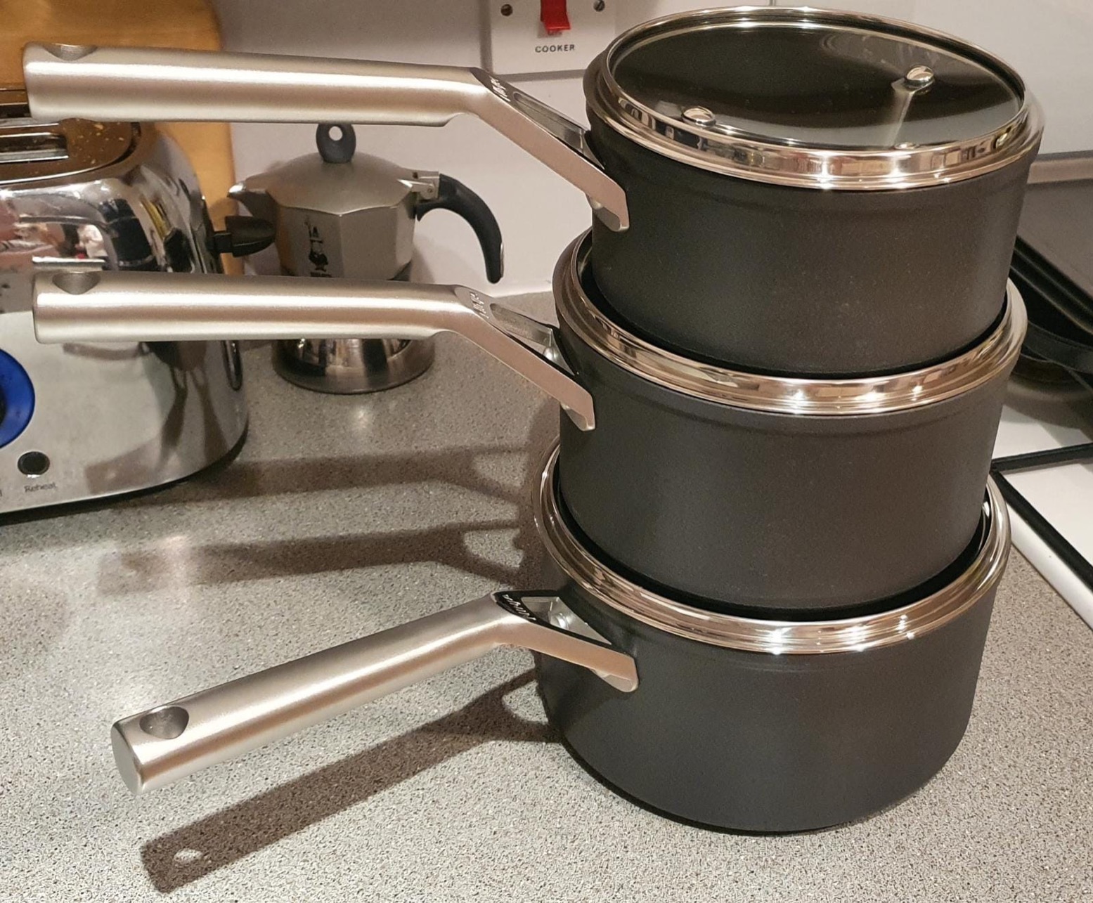 This review is for the Ninja Foodi ZEROSTICK Stainless Steel 3-Piece Pan Set [C63000UK] Saucepan Set, Non-Stick.