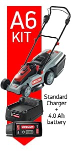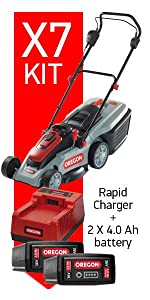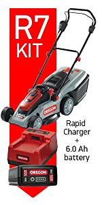 I do like Oregon products and this little mower is great. Battery and design are good. Lightweight and easy to turn. Small flat gardens suit this mower. Very good value as always from Orego