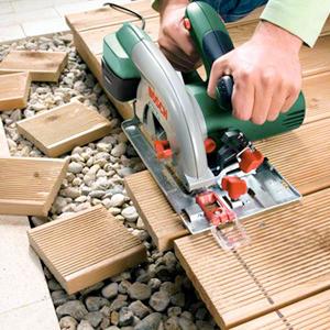 The PKS 55 hand-held circular saw from Bosch enables comfortable and effortless working thanks to its compact and ergonomic design. Standard, freehand and mitre cuts can all be made effortlessly with the powerful 1,200 W motor. Ergonomically designed handles with non-slip coating, easily accessible functions, the clear and precise depth setting, as well as the lock-off switch which can be operated on both sides also offer optimum control during sawing.