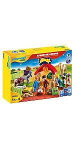 Colourfully designed advent calendar from the Playmobil 1.2.3 theme world with Christmas nativity scene, numerous figures and animals as well as without parts that can be swallowed.