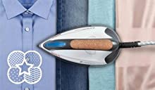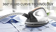 The innovative aluminium soleplate with double ceramic coating is equipped with patented 360° fluid curve technology that allows multidirectional ironing and eliminates even the most difficult creases without the slightest effort.